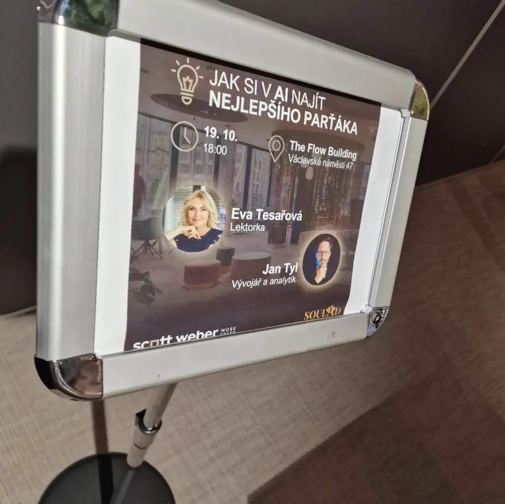 Dneska jsem měl bomba 💥 přednášku🎤 o tom, jak najít v #AI svého parťáka. Večer moderovala úžasná #EvičkaTesařová😊 a jako očitý svědek byl skvělý #MartinJotov v jednom z nejcool míst – #TheFlowBuilding na Václavském náměstí. 🏢
