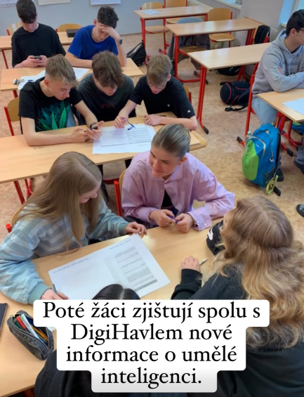 Jak dnes vypadalo pilotování DigiHavla 2.0 lekce o AI. Zdroj na video zde: https://www.facebook.com/reel/1656057718135071