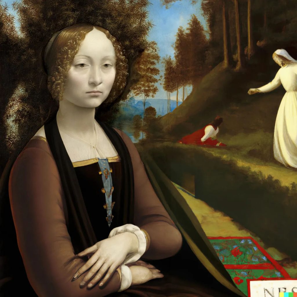– vyzkoušel jsem obraze Ginevra de‘ Benci od Leonardo da Vinci, který mi visí už asi 10 let v obýváku (i když mám silné podezření na falsum).